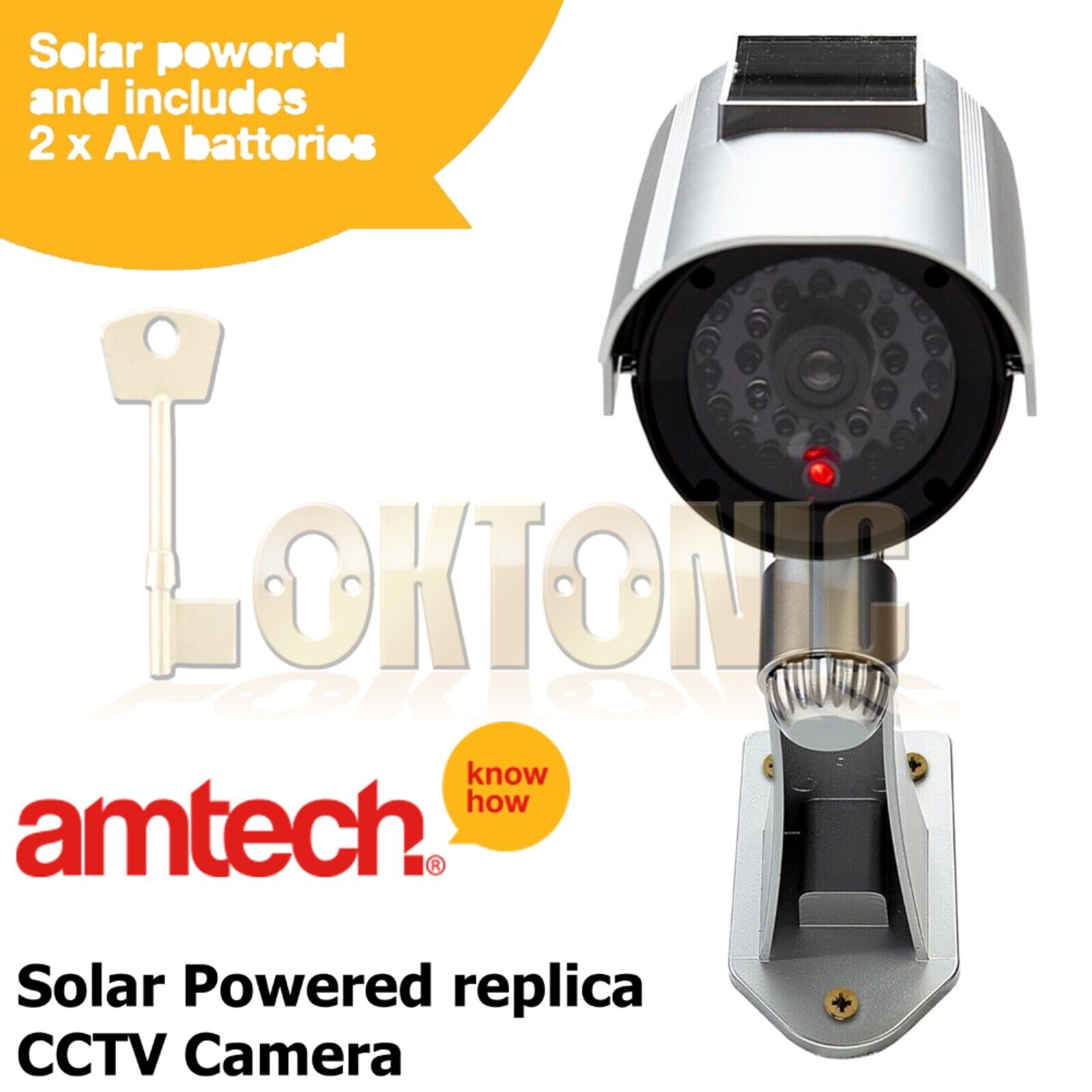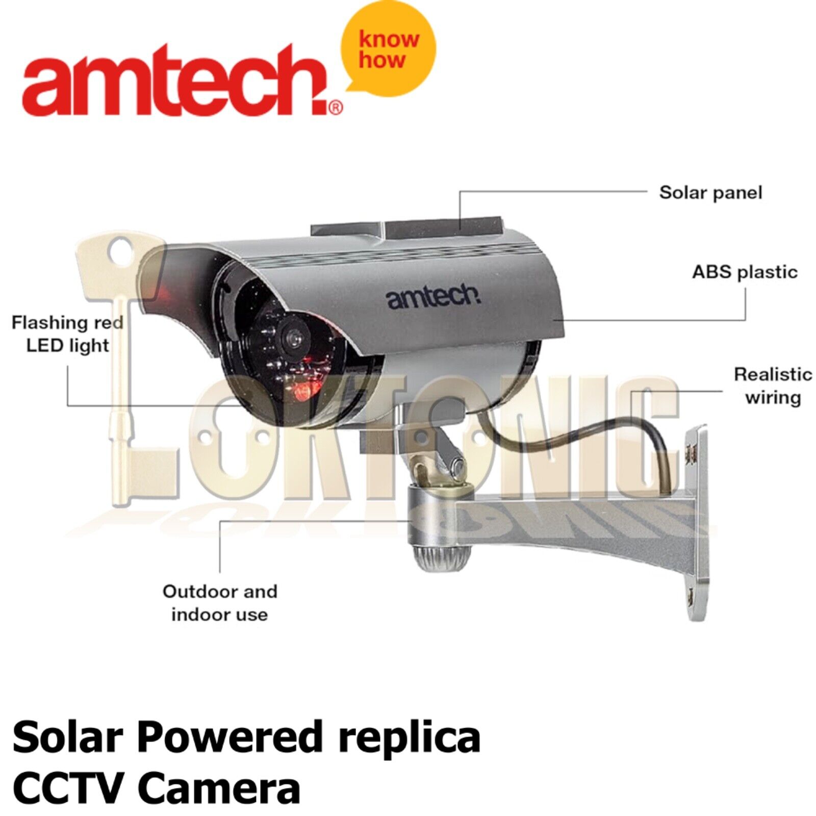 Amtech replica camera effectively deter intruders and opportunists with this fake CCTV camera, a cost-effective alternative to real surveillance systems. A must-have for anyone who wants to know that they’re home is safe when out and about.
