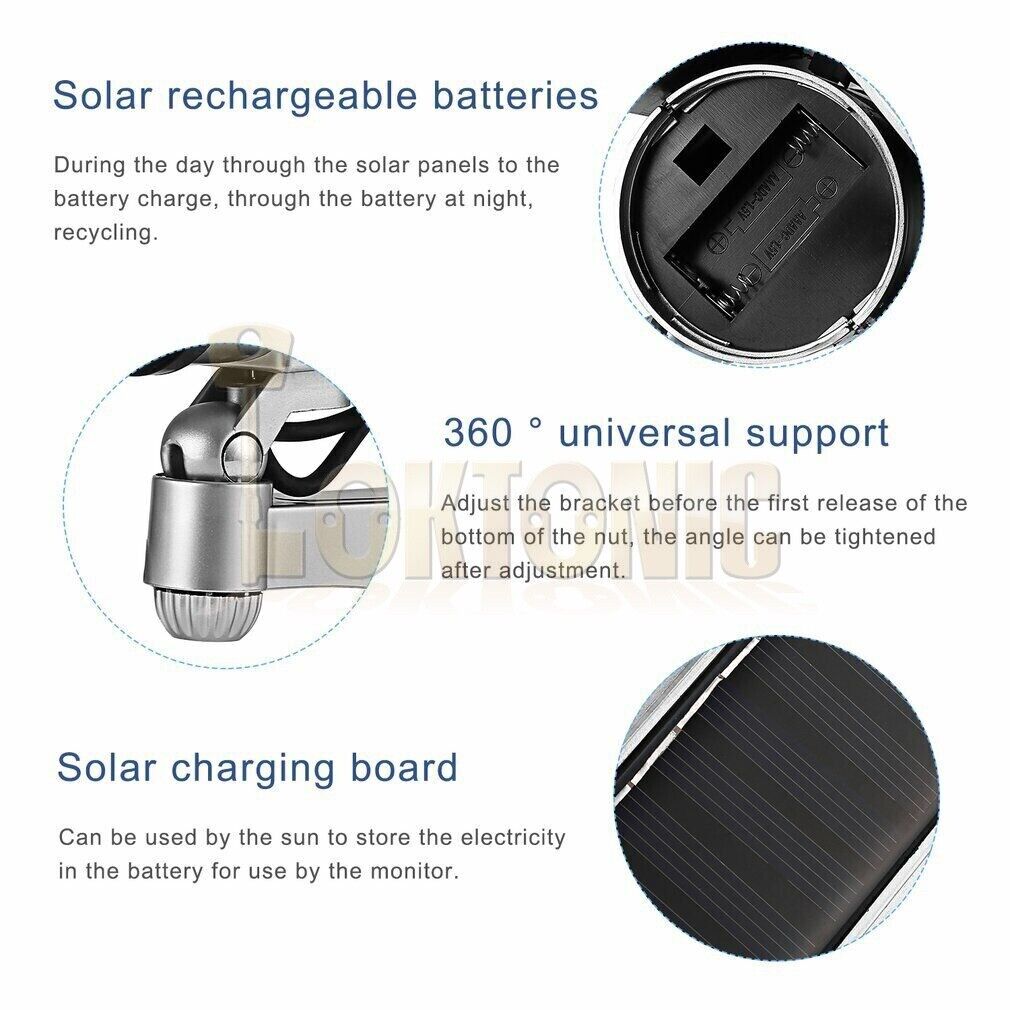 | Features | Flashing LED, Wall Mounted, Solar Powered |