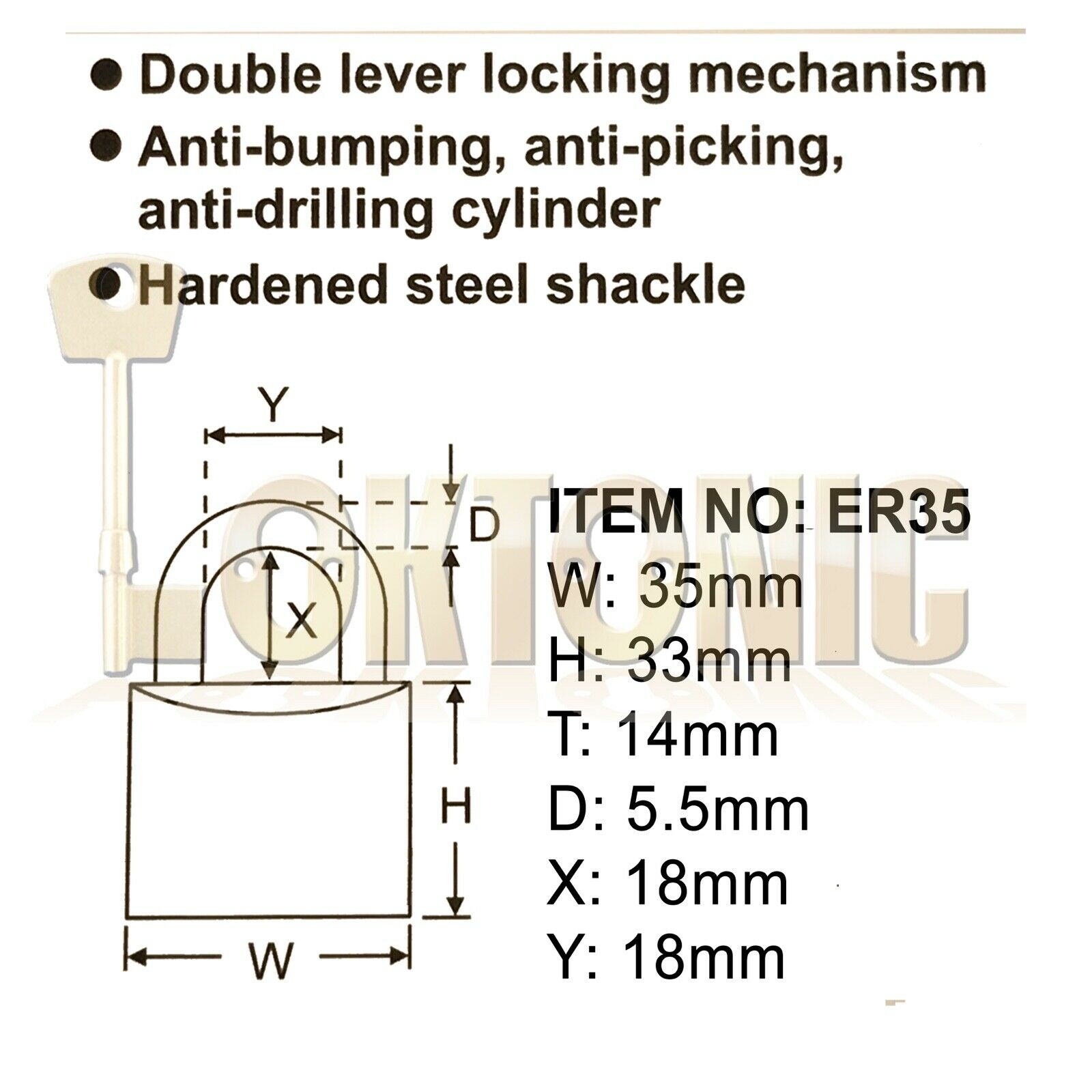 Enfield ER35 Security 35mm Solid Brass Padlock Keyed Alike Hardened Shackle