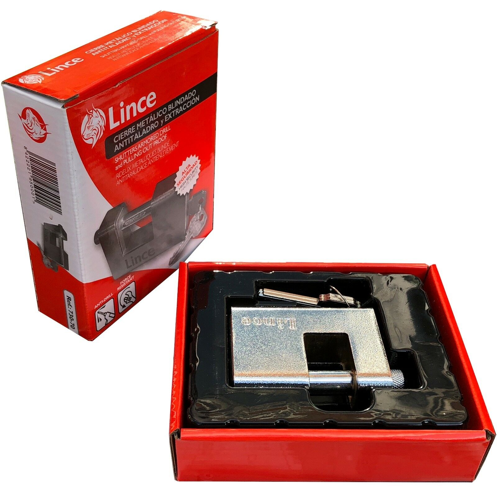 Lince L730-70 Fully Armoured Rectangular Steel Roller Shutter Garage Padlock